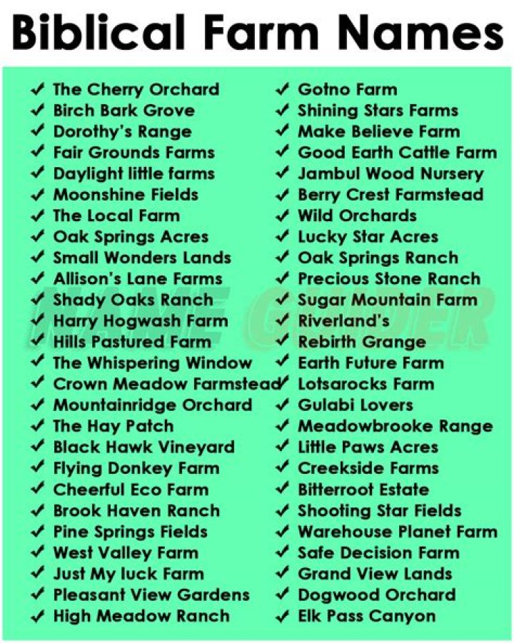 - Culture: Religious farm names are often reflective of the culture of the farmers who choose them.