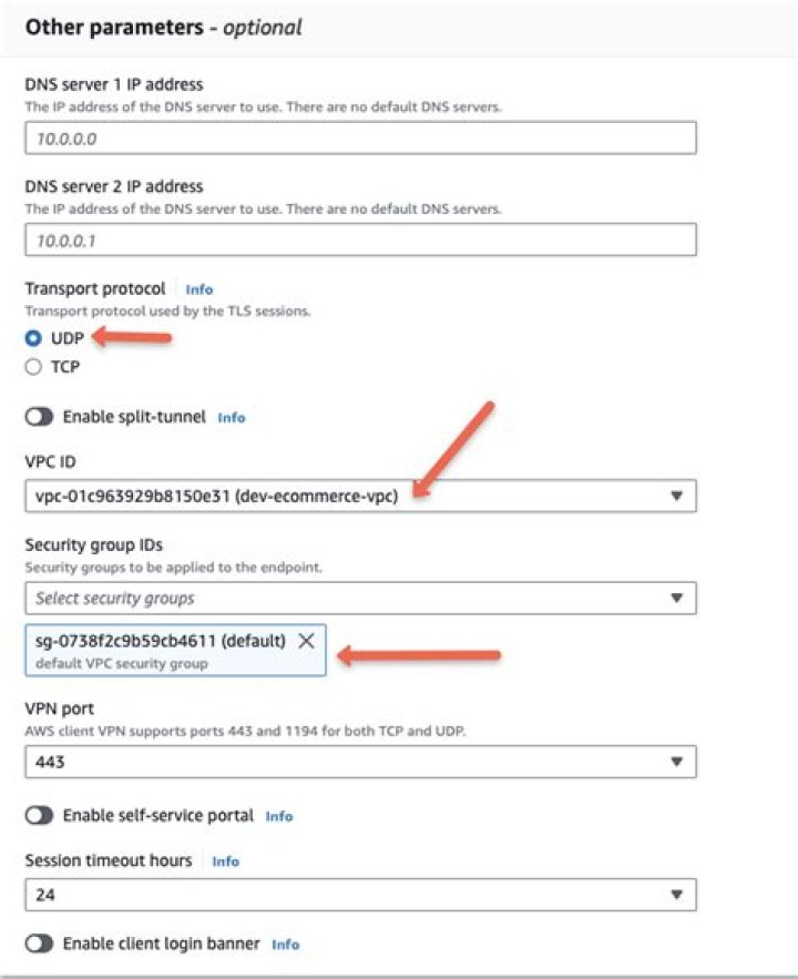 Information about the DNS servers to be used for DNS resolution. A Client VPN endpoint can have up to two DNS servers. If no DNS server is specified, the DNS address configured on the device is used for the DNS server.