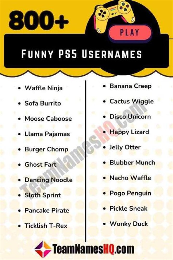 Answer: While some funny PS5 names may be considered humorous or lighthearted, it is important to avoid using names that are offensive, discriminatory, or violate the PlayStation Network's Terms of Service.