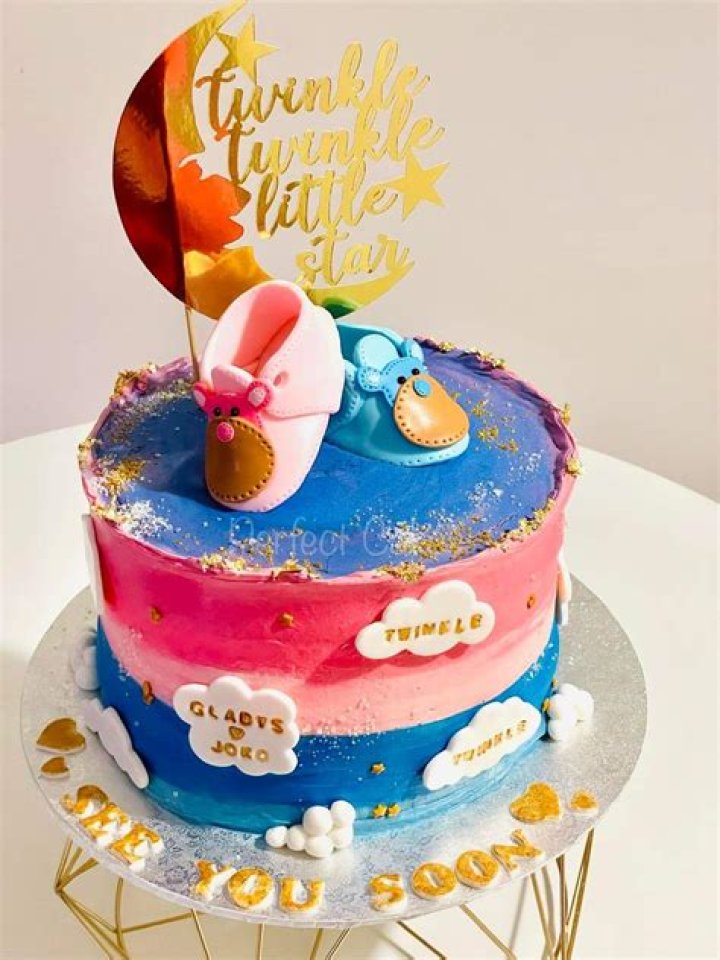 A twinkle twinkle gender reveal cake is a fun and unique way to announce the gender of your baby. These cakes are typically decorated with blue or pink frosting, and the inside of the cake is filled with either blue or pink cake mix. When the cake is cut, the color of the cake mix reveals the gender of the baby.