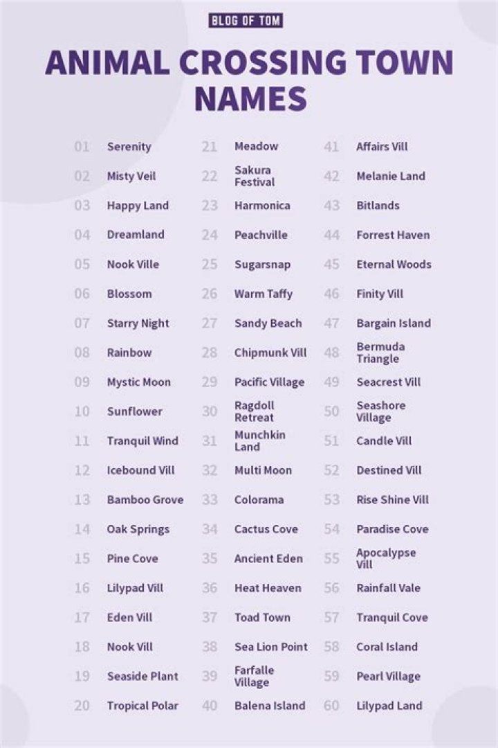 Here are a few tips to help you choose the perfect cute town name for your Animal Crossing town: