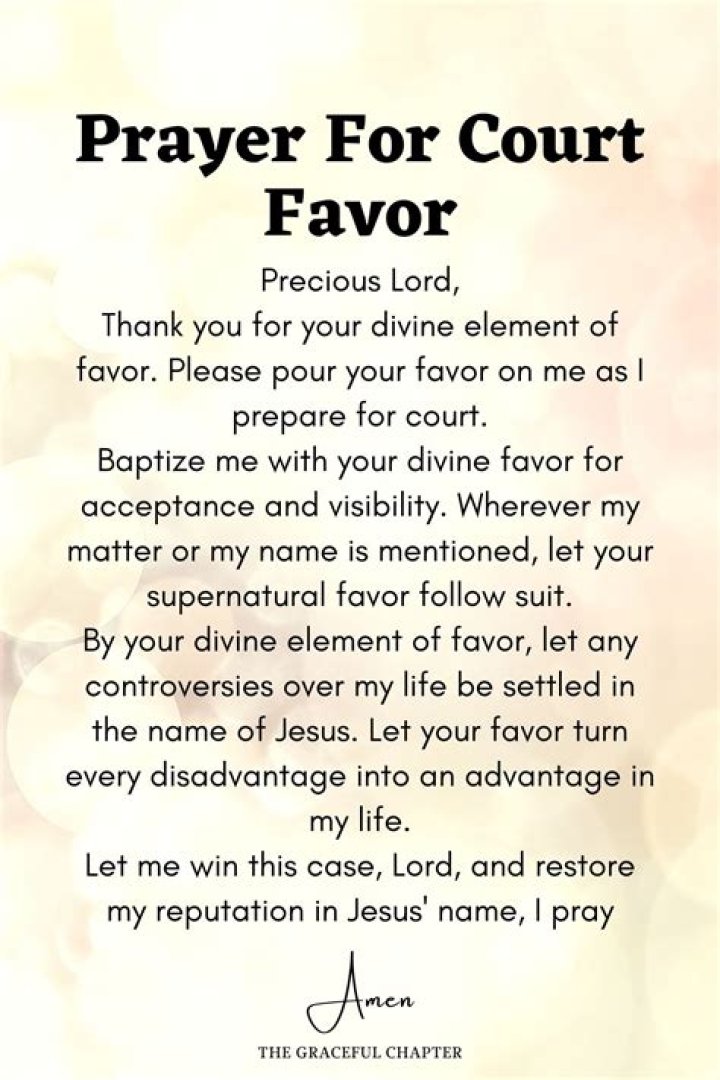 Regardless of the specific reasons why people pray for favor in court, this practice can provide a sense of comfort and support during a stressful and uncertain time. It can also serve as a reminder that individuals are not alone in their struggles and that there is hope for a positive resolution.