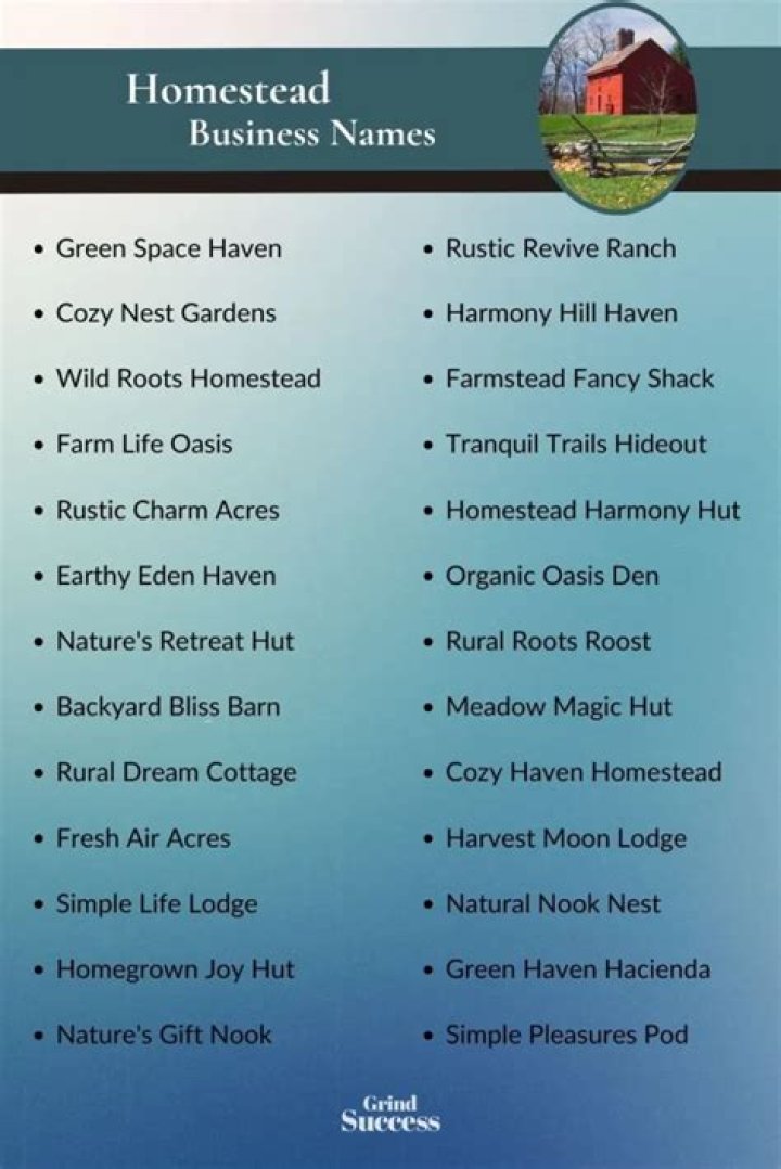 - Creativity: For homesteaders who value creativity and self-expression, names like "Artful Acres" or "Musehaven" capture the spirit of innovation and artistic exploration. These names hint at the unique and personal touch that you bring to your homesteading journey.